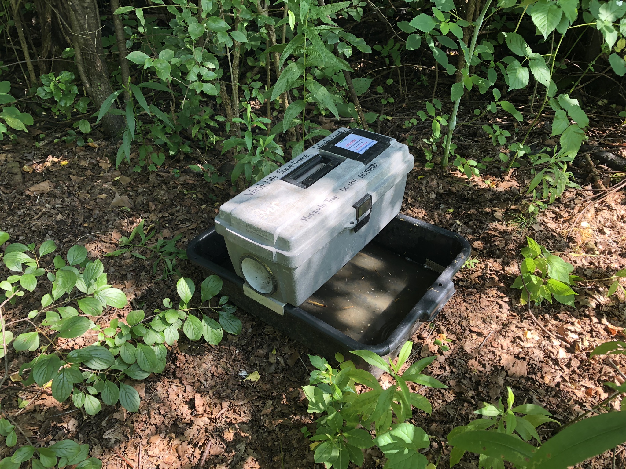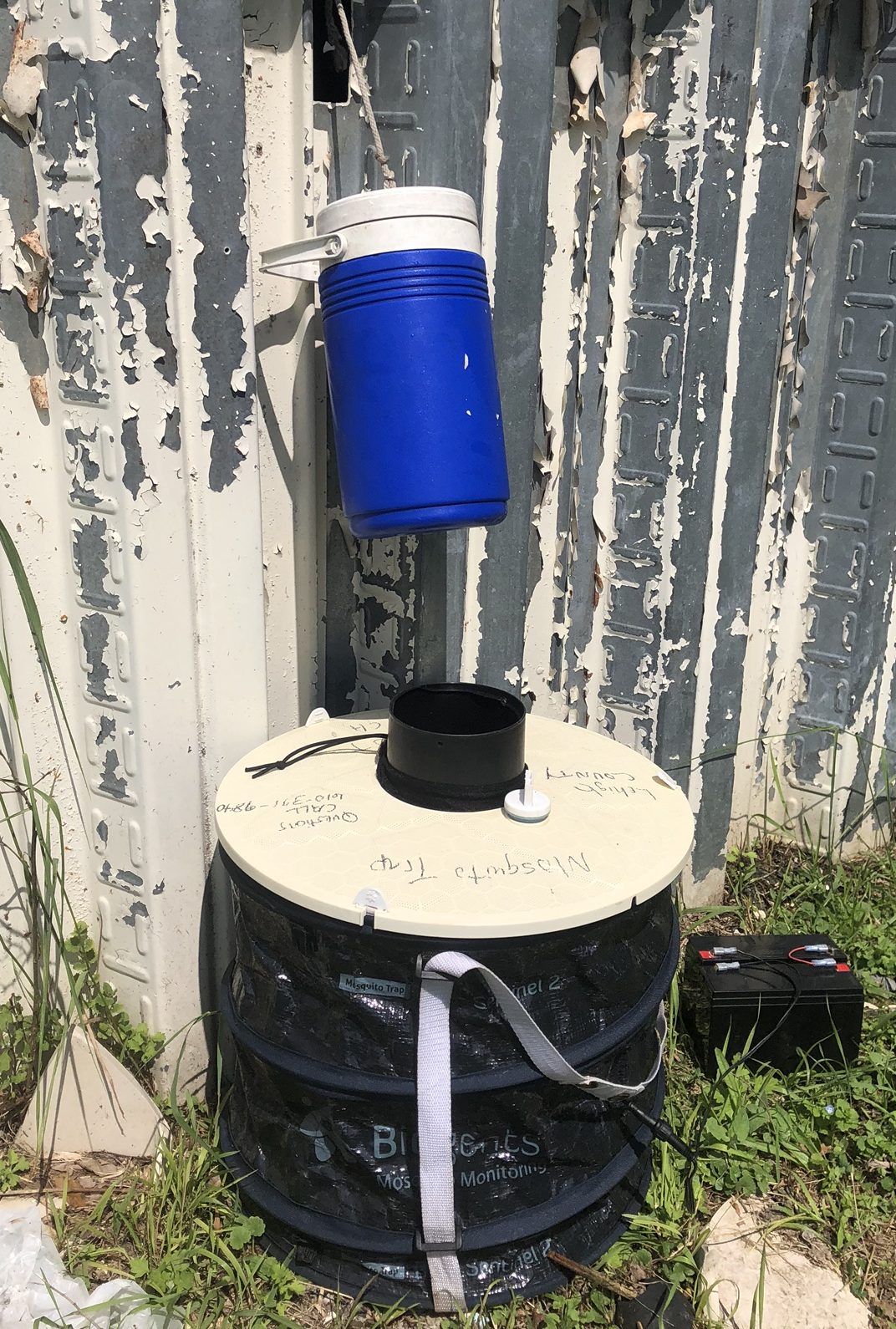 There are two main types of traps used by the program to capture adult mosquitoes: gravid traps and dry ice traps